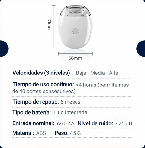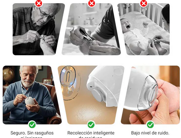Imagina una manicura perfecta, sin dolor y sin restos de uñas volando por la sala. Protege la piel de tu familia con su borde de seguridad que detecta la uña y evita lesiones. Es rápido, profesional y cabe en tu bolsillo.