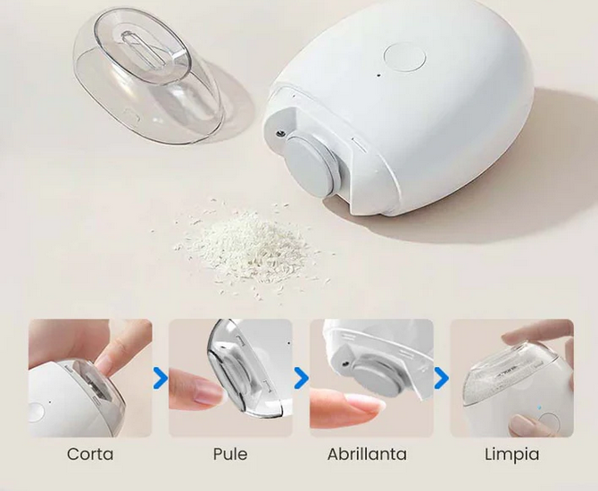 Sin duda tienes que tener nuestro Cortaúñas Eléctrico Automático, la solución 2 en 1 que recorta y pule en segundos. Con motor ultra silencioso y tecnología de precisión, es tan seguro que puedes usarlo con los ojos cerrados. Su diseño ergonómico y batería recargable lo hacen el aliado perfecto para niños, adultos y abuelitos.